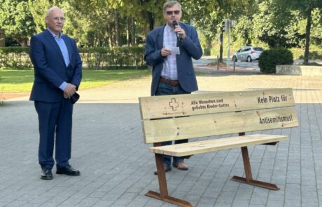 Am 1. September 2024 haben wir im Rahmen unserer Aktion »Kein Platz für …« drei Bänke aufgestellt. In Haste war der Leiter der jüdischen Gemeinde Osnabrück, Michael Grünberg, zu Gast.