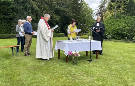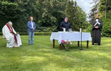 Am 9. Juni 2025 haben wir wieder den ökumenischen Pfingstgottesdienst im Garten des Klosters Nette gefeiert.