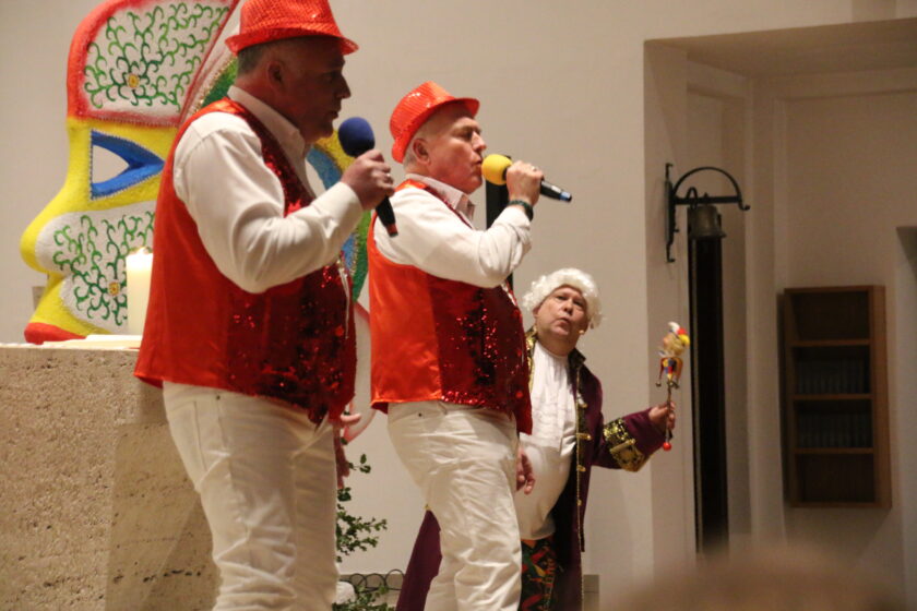 Für Stimmung sorgte nicht nur die Predigt, sondern auch die musikalischen Beiträge: Die Orgel spielte karnevalistische Klänge und Märsche, der MGV Liederkranz Haste sang „Ein Traum“ von Bosse und Jörg Herzog und die „Prinz Twins“ performten gemeinsam mit der Gemeinde lautstark „Halleluja“ von Brings.